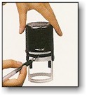 1. Lock the self-inker in the first position by pushing down 1/8" and pressing buttons on the side of the self-inker. |